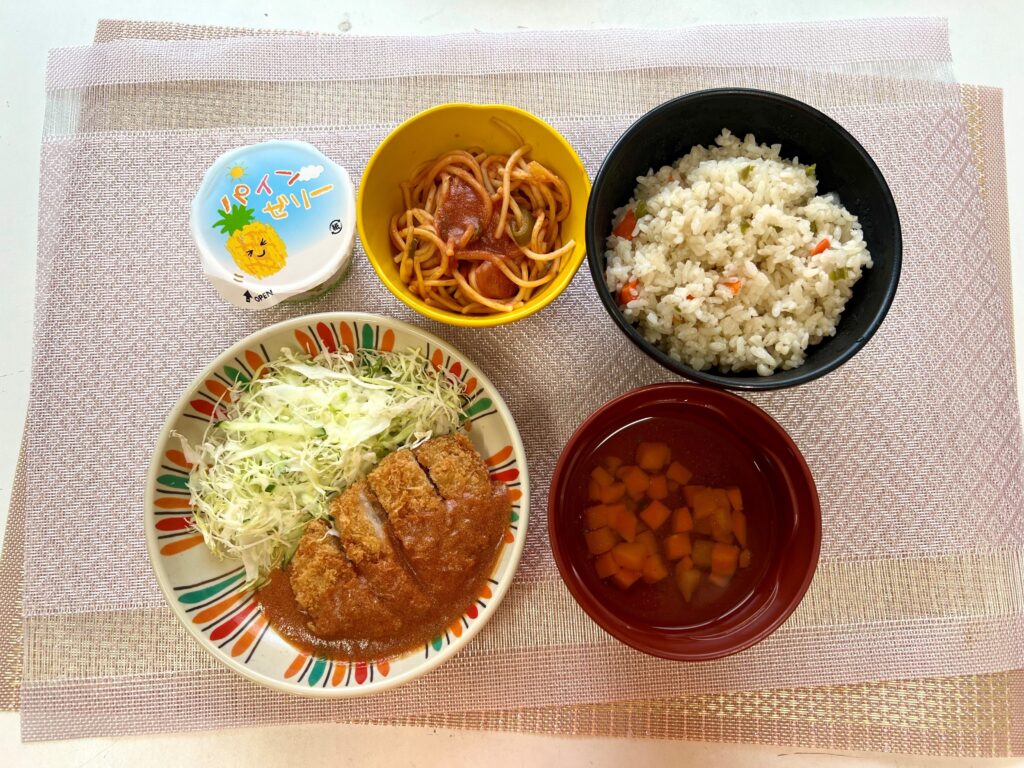 ・トンカツ、ピラフ、ナポリタンと豪華すぎる。