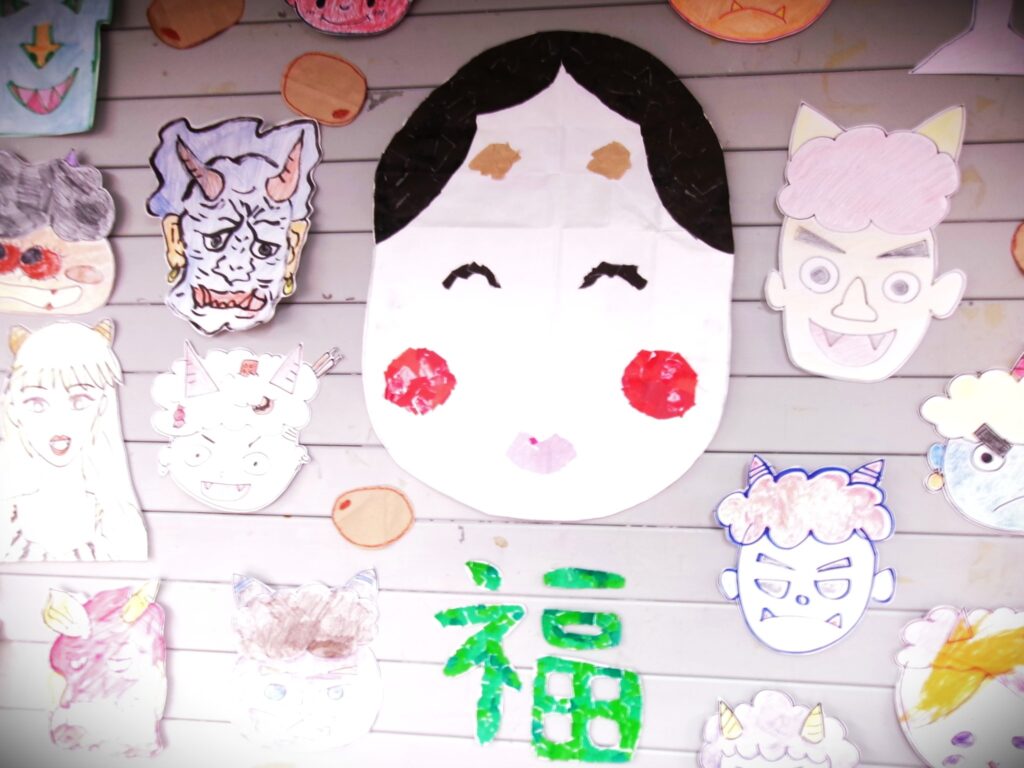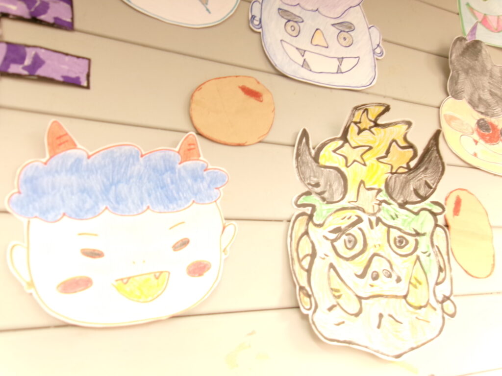 2月は、節分で鬼の面を制作しました。それぞれが、好きな鬼を選び、色塗りをしました。怖そうな鬼、優しそうな鬼、子供の鬼など、個性あふれる鬼たちが集合し、にぎやかに病棟を飾ってくれました。