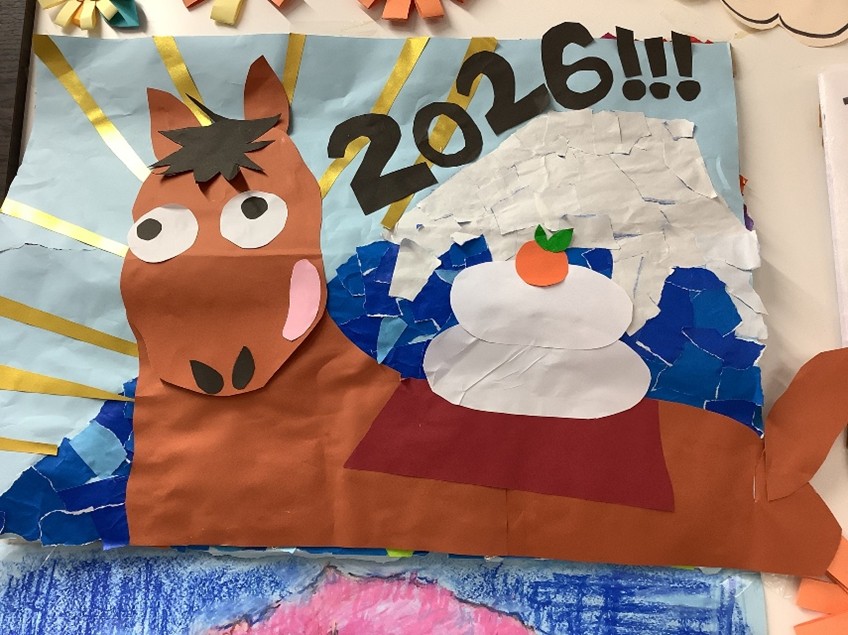馬と富士、そして2026の文字が描かれた作品は、1人ひとりの手作業によって完成した病棟ならではのあたたかい共同作品です。