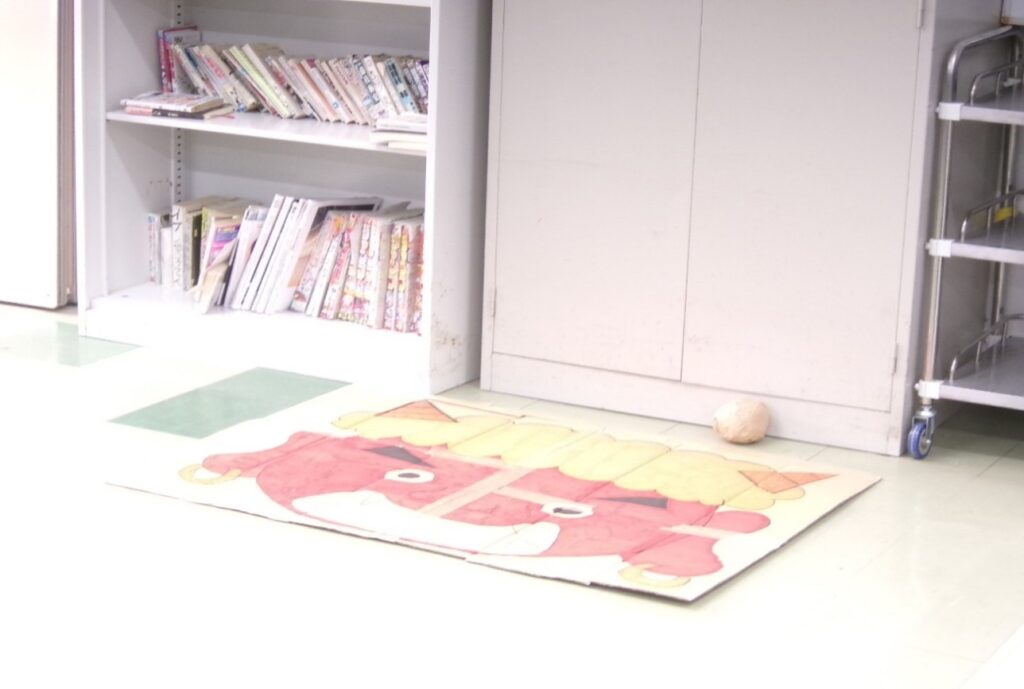今回の病棟レクレーションでは、節分にちなんだ豆まきゲームを実施しました。段ボールに描いた鬼の顔に、豆に見立てたボールを投げ、目や鼻、口、角などの各パーツごとに設定した得点を競う形式で行いました。